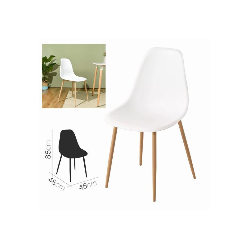 Chaise Scandinave Blanc EN plastique et Bois beige – 45 x 48 x 85 cm