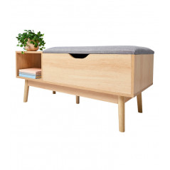 Banc entrée 1 tiroir et 1 casier en bois et assise polyester gris 100x40x45cm
