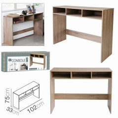 Console LP HOME 102 x 33 x 75 cm Avec 3 Cases En Bois Coloris Naturel