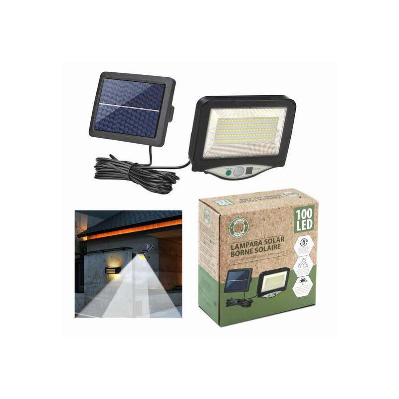 Lumière Solaire 100 LED Quatre Côtés Lumière De Jardin Extérieure, Lumière Murale avec détection de mouvements Du Corps Humain,