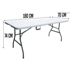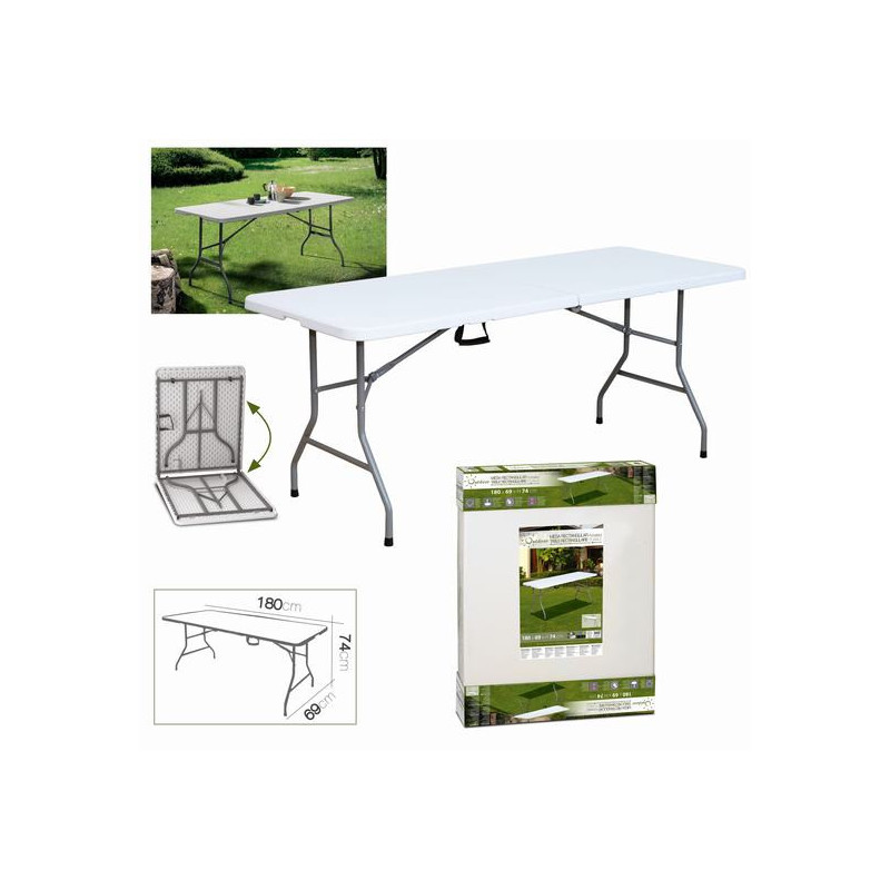 Idéale pour toutes vos réceptions, événements en extérieur, fêtes et moments de convivialité, cette table pliante est à la fois pratique et robuste. Fabriquée en polyéthylène haute densité (PE-HD) avec une structure en acier, elle garantit une excellente résistance aux chocs et aux intempéries.