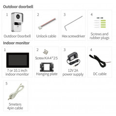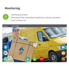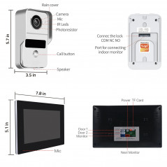 Microphone et haut-parleur intégrés à la caméra, lorsque les visiteurs appuient sur la sonnette ou que la détection de mouvement est déclenchée, la caméra de sonnette enregistre automatiquement des vidéos ou des photos instantanées et les enregistre sur la carte micro SD du moniteur.