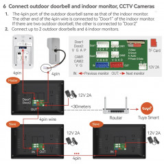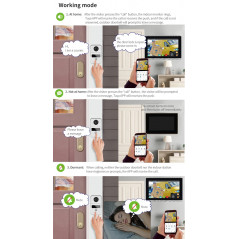 Veuillez noter que le système d'interphone vidéo wifi ne signifie pas qu'il n'a pas besoin de câble. Le moniteur prend en charge le réseau WIFI, mais le moniteur intérieur et la sonnette sont connectés par câble.