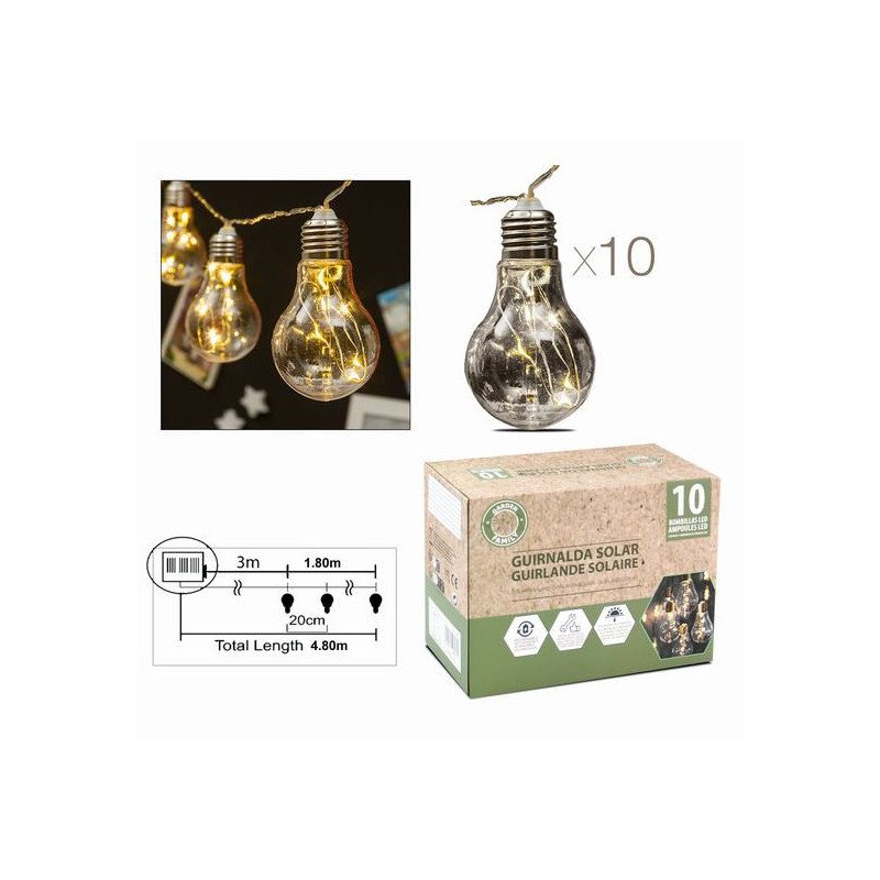 Guirlande Ampoule Solaire 10 LED – Blanc Chaud – 4,80 m