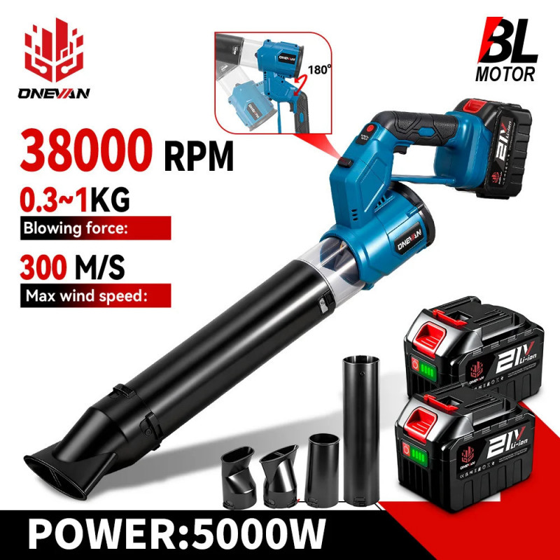 ONEVAN – ventilateur Turbo électrique sans balais 2 en 1, 38000 tr/min, souffleur d'air, poussière de feuilles, outil de nettoya