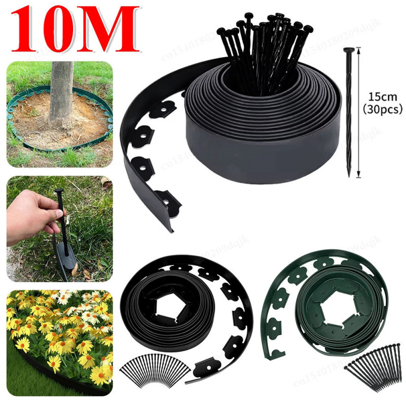 Kit de bordure de pelouse Flexible de 10M avec 30 pointes, bordure de paysage robuste sans chiot, bobine de bordure de jardin pour allée de pelouse