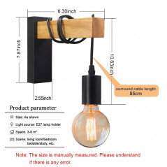 Applique Murale Vintage en Bois Rétro, Luminaire Décoratif pour Salle à Manger Chambre à Coucher