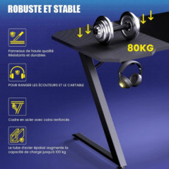 Ceci Bureau de jeu 120 x 60 cmest spécialement conçu pour transformer vos sessions de jeu avec des fonctionnalités professionnelles :